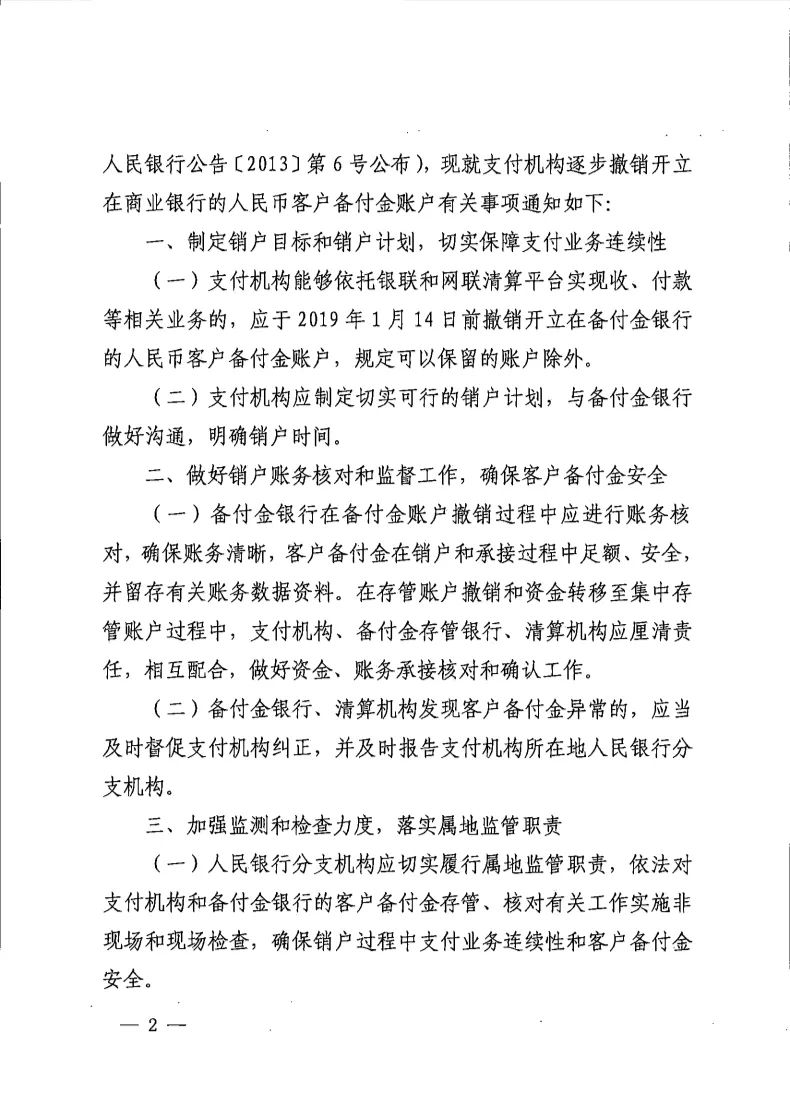 11月29日,央行支付結(jié)算司向各中支機(jī)構(gòu)、各備付金銀行網(wǎng)絡(luò)金融部和支付機(jī)構(gòu)下發(fā)《中國人民銀行支付結(jié)算司關(guān)于支付機(jī)構(gòu)撤銷人民幣客戶備付金賬戶有關(guān)工作的通知》(銀支付【2018】238號)(下文簡稱“文件”)。