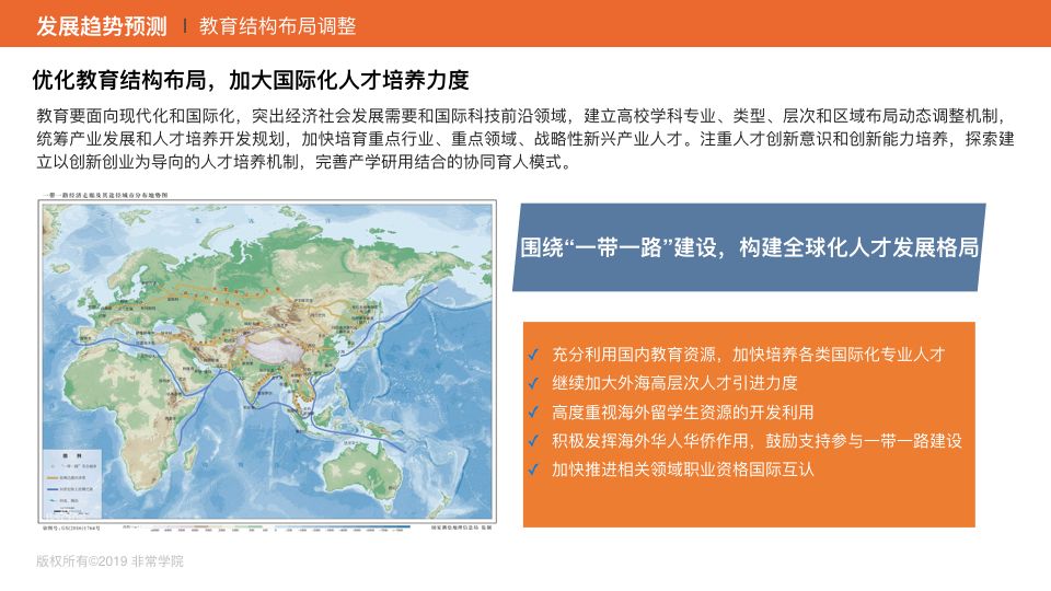 中共中央辦公廳、國務(wù)院辦公廳印發(fā)的《加快推進(jìn)教育現(xiàn)代化實(shí)施方案(2018-2022)》、《中國教育現(xiàn)代化2035》對于人才培養(yǎng)計劃做了詳細(xì)的部署,即大力培養(yǎng)國際化人才,充分利用國際國內(nèi)兩種人才資源,圍繞“一帶一路”倡議,加快構(gòu)建國際化人才高地。